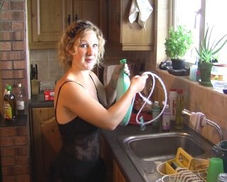 Having given half the water to the matress, they figured they'd better refill the bag before carrying on, but carry on they did, starting with some full-body massage by Kaz.